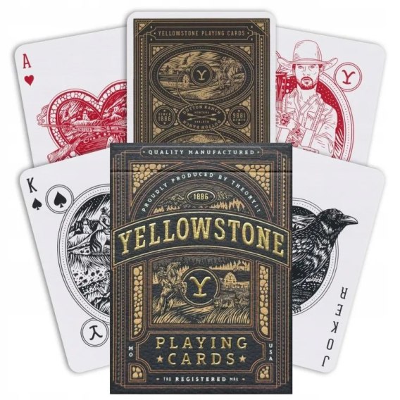 Świat Yellowstone   GŁĘBOKO W SERCU MONTANY Odkryj Ranczo Dutton podczas następnego wieczoru gier z kartami do gry Yellowstone Premium. Wykorzystując zabytkowy druk typograficzny, opakowanie jest nieskazitelnie zaprojektowane i doskonale zaprezentowane, starannie wykonane, aby uhonorować ekscytujące narracje i chwile, które nadają serialowi Yellowstone jego kultowego statusu.   Witamy na Ranczu Dutton Każda karta oddaje hołd przebojowemu serialowi telewizyjnemu, z ulubionymi postaciami, takimi jak Beth, Kayce i Rip, skrupulatnie ożywionymi w oszałamiających szczegółach.   AUTENTYCZNIE YELLOWSTONE Karty do gry Yellowstone zawierają w pełni niestandardową, oryginalną grafikę z serialu, zapewniając wciągające wrażenia ze wszystkimi ulubionymi postaciami. To nie tylko talia kart, ale także przedmiot do rozmów.   NIEOKIEŁZNANY DZIKI ZACHÓD Przygotuj się na urozmaicenie wieczorów z grami, wyrusz w podróż na nieokiełznane pustkowia Zachodu i zanurz się w porywającym świecie Yellowstone za każdym razem, gdy trzymasz je w dłoniach.