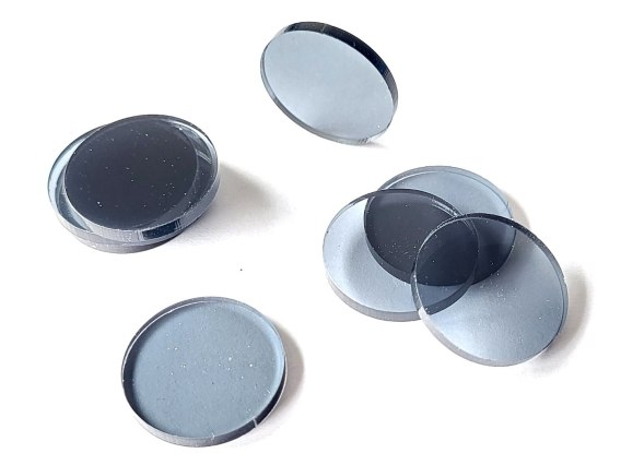 Zestaw 10 żetonów o średnicy 22 mm, wykonanych ze szkła akrylowego o grubości 3 mm.     Znaczniki będą użyteczne w grach bitewnych, RPGach, grach Print & Play, w prototypach gier planszowych, jako zamienniki elementów oraz przy wprowadzaniu własnych modyfikacji zasad do gier. Po żetonach można pisać mazakami suchościeralnymi.   Do czyszczenia PMMA (szkła akrylowego - plexi) nie należy używać żadnych środków na bazie alkoholi. Polecamy wodę z mydłem, a w przypadku silnych zabrudzeń - cytrusowe środki czyszczące.