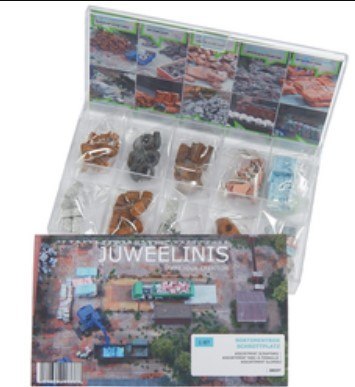 Czasami zdarza nam się, że nie wiemy, które materiały przydałyby się do danej dioramy. Albo potrzebujemy niewiele, ale różnych materiałów do kolejnego pomysłu. A może po prostu chcemy coś przetestować? W takich wypadkach najlepiej sprawdzają się Zestawy Juweelins, bo od razu masz po trochu z każdego typu asortymentu. Zestaw zawiera dziesięć produktów w skali 1:87: Zardzewiały złom przemysłowy Stare opony do ciężarówek Złom samochodowy Gruz szary/czerwony Zezłomowane auta Bele złomu [aluminiowe] Stare beczki Złom przemysłowy [aluminiowe] Drut zwinięty na szpule Sprasowane wraki samochodów