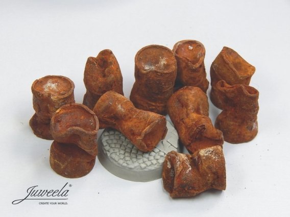 Zestaw akcesoriów, które idealnie urozmaicą każdą scenerię. Te drobne detale sprawdzą się zarówno w dekoracji pojedynczych podstawek na figurki, jak i całych makiet, dioram i pól bitew.