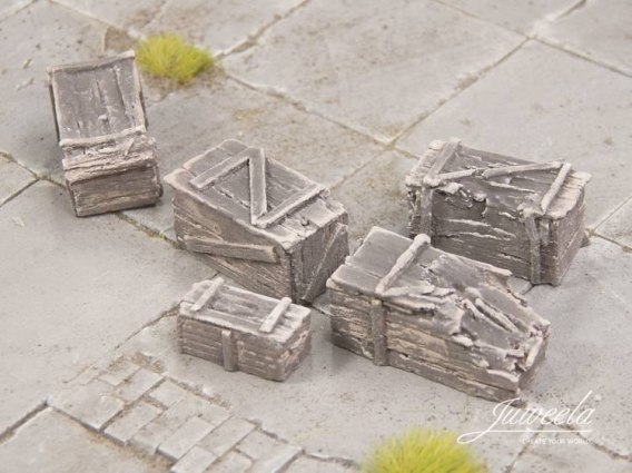 Zestaw akcesoriów, które idealnie urozmaicą każdą scenerię. Te drobne detale sprawdzą się zarówno w dekoracji pojedynczych podstawek na figurki, jak i całych makiet, dioram i pól bitew.