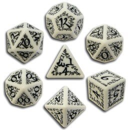 Zestaw siedmiu kostek stylizowanych w elfickich barwach i oznaczeniach, przeznaczonych głównie (ale nie tylko!) do gier fabularnych.