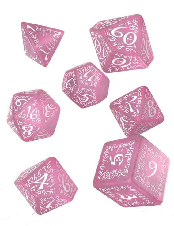 Kości RPG Elfickie Różowo białe Oto zestaw kości dla prawdziwych miłośników fantasy! Z jednej strony, dzięki wyrafinowanym zdobieniom elfickich run, przywołuje na myśl stylistykę klasycznych przygód i opowieści, które wspominamy z rozrzewnieniem. Białe zdobienia na lśniąco różowym tle przywodzą na myśl baśniowe lasy elfów, pełne niesamowitych istot i zjawisk. Jako jeden z naszych pierwszych stworzonych przez nas wzorów, Kości RPG Elfickie zaczynają kolejny etap władania naszą ofertą. Ich eleganckie piękno i pełne dostojeństwa grawerunki są pięknie dopełnione przez nowy zestaw kolorów. Doskonale sprawdzą się w Twojej kolekcji i podczas Twoich sesji! Magia Elfów Arsenał zaklęć Zestaw zawiera 7 elementów: K4, K6, K8, K10, K12, K20, oraz K100. Wyższa magia Tło kostek jest kobaltowe, a zdobienia są srebrne. Elegancja prostoty Czcionka cyfr jest stylizowana na elfickie pismo, z łagodnymi falistymi ogonkami i akcentami. Elfickie runy na ściankach oprócz delikatnych cyfr widnieją także napisy runiczne w prastarym języku elfów. Pozwolenie Najwyższej Rady Kości RPG Elfickie Różowo-białe produkowane są na licencji udzielonej nam przez Najwyższą Radę Czarodziejek i Czarodziejów, po ponad dekadzie rozpatrywania wniosku.