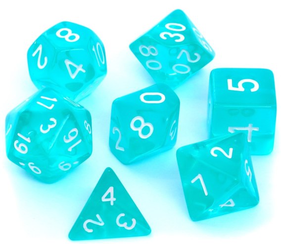 Komplet kości REBEL RPG - Kryształowe - Błękitne / Szmaragdowe