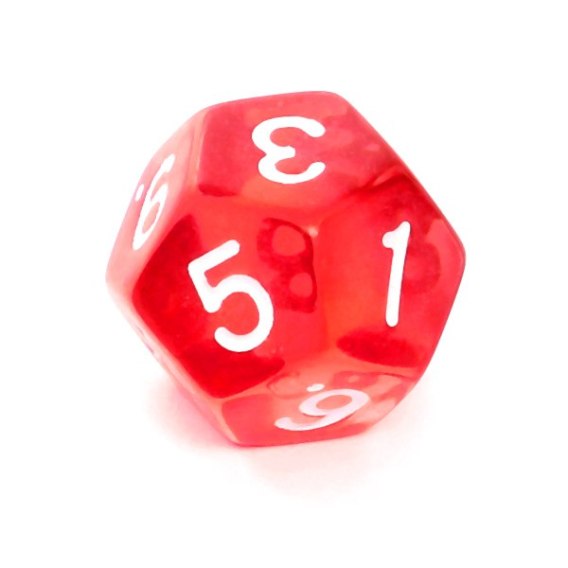 Kość REBEL kryształowa 12 Ścian - Cyfry - Czerwona
