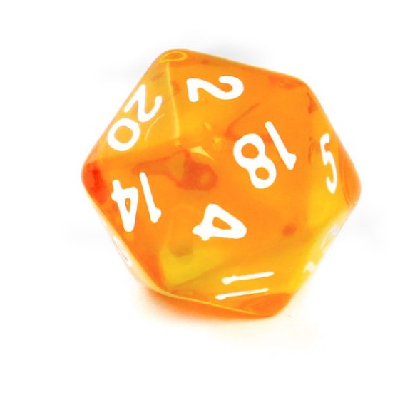 Kość REBEL kryształowa 20 Ścian - Cyfry - Pomarańczowa