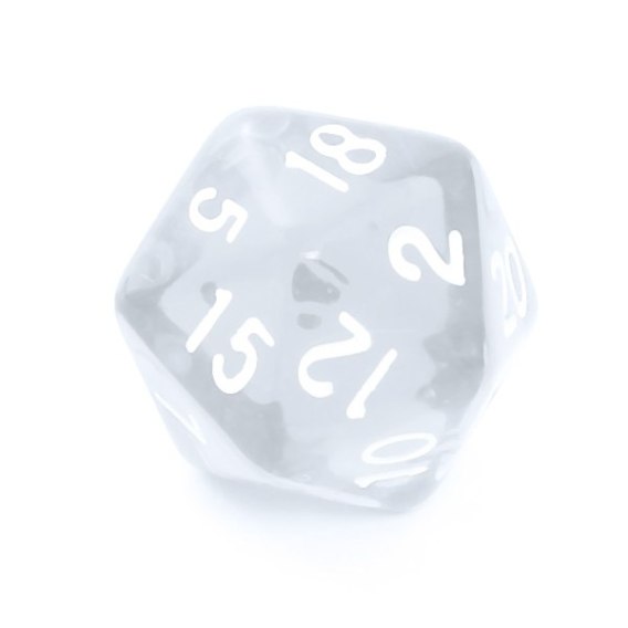 Kość REBEL kryształowa 20 Ścian - Cyfry - Przezroczysta