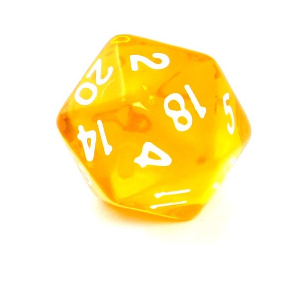 Kość REBEL kryształowa 20 Ścian - Cyfry - Żółta