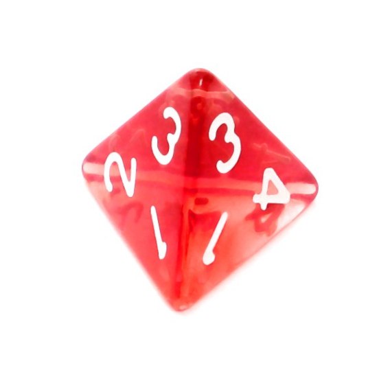 Kość REBEL kryształowa 4 Ściany - Cyfry - Czerwona