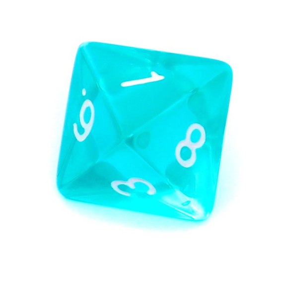 Kość REBEL kryształowa 8 Ścian - Cyfry - Błękitna