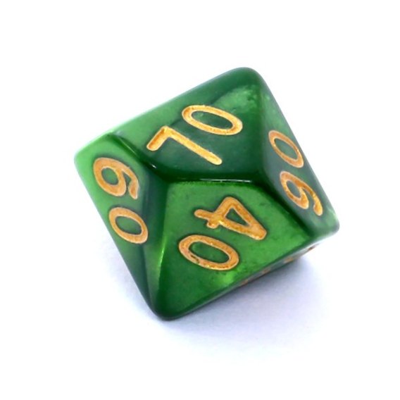 Kość REBEL perłowa 10 Ścian (setka) - Cyfry - Zielona