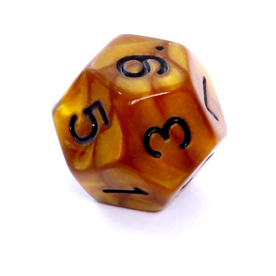 Kość REBEL perłowa 12 Ścian - Cyfry - Ciemnożółta (czarne cyfry)