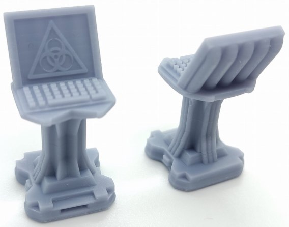 Zestaw zawiera 8 figurek 3D komputerów, służących do oznaczania pomieszczeń z komputerami. Można je stosować zarówno do gry Nemesis jak i Nemesis Lockdown. Wydruk z żywicy.