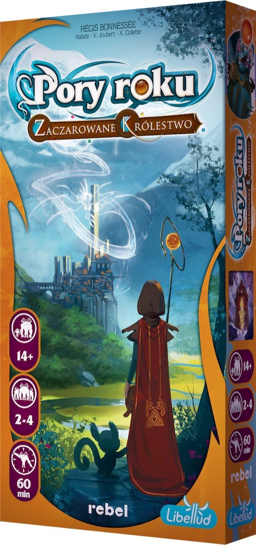 Zaczarowane Królestwo to rozszerzenie do gry Pory Roku. 40 nowych kart Mocy można łączyć ze 100 kartami z gry podstawowej. 10 kart Czarów sprawi, że każda rozgrywka będzie oferowała jeszcze więcej możliwości, a 12 żetonów zdolności specjalnych wyróżni Twojego czarnoksiężnika spośród reszty.
