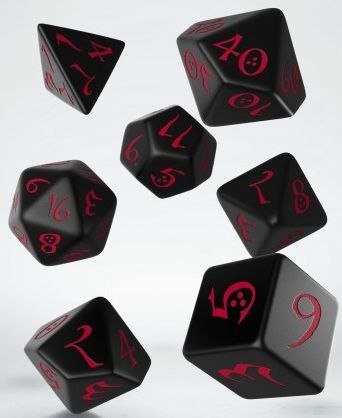 Kości RPG Klasyczne Czarno-czerwone – Krew i Ciemność, trzeba pisać coś więcej? Jest to bardzo czytelny zestaw w kolorach prawdziwej wojny z jej wszystkimi cieniami. To nie są kości dla pysznych szermierzy, ale dla doświadczonych wojowników, którzy wiedzą wszystko o walce i czekają na kolejne starcie