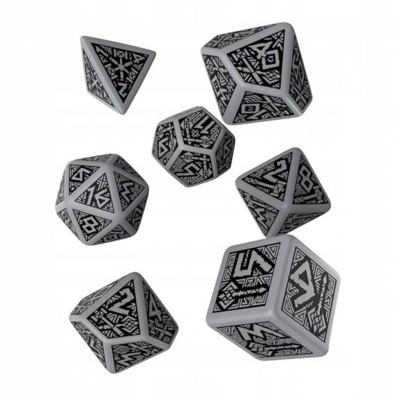 Q-Workshop Komplet kości krasnoludzki - Szaro-czarne
