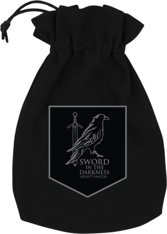 Czujność, poświęcenie i obowiązek te zasady są wplecione w historię Nocnej Straży niczym szwy tej oficjalnej, licencjonowanej sakiewki na kości! Została wykonana z wytrzymałej bawełny w kolorze czarnym i ozdobiona szarą grafiką miecza i kruka uzupełnioną o hasło: Sword in the Darkness. Dzięki temu będzie doskonałym miejscem do przechowywania kości do gry lub innych drobiazgów!    Co wyróżnia produkt?   Sakiewka została wykonana z wytrzymałej bawełny o gramaturze 200 i jest w stanie pomieścić do 63 kości. W sam raz dla tych, którzy lubią być przygotowani na każdą okoliczność! Solidny sznurek i plastikowy stoper sprawiają, że kości pozostaną bezpieczne niezależnie czy zostaniesz z nimi w domowym zaciszu, czy zabierzesz je w drogę. Wyrazisty nadruk z szarą grafiką miecza i kruka oraz hasłem Sword in the Darkness prezentuje się dumnie na czarnym tle, czyniąc z sakiewki nieodłączny element wyposażenia każdego fana strażników Muru.