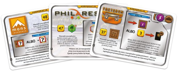 UWAGA! Część kart z tego zestawu służy do rozgrywki z dodatkiem Terraformacja Marsa: Niepokoje (ich treść odnosi się bezpośrednio do elementów z tego dodatku).